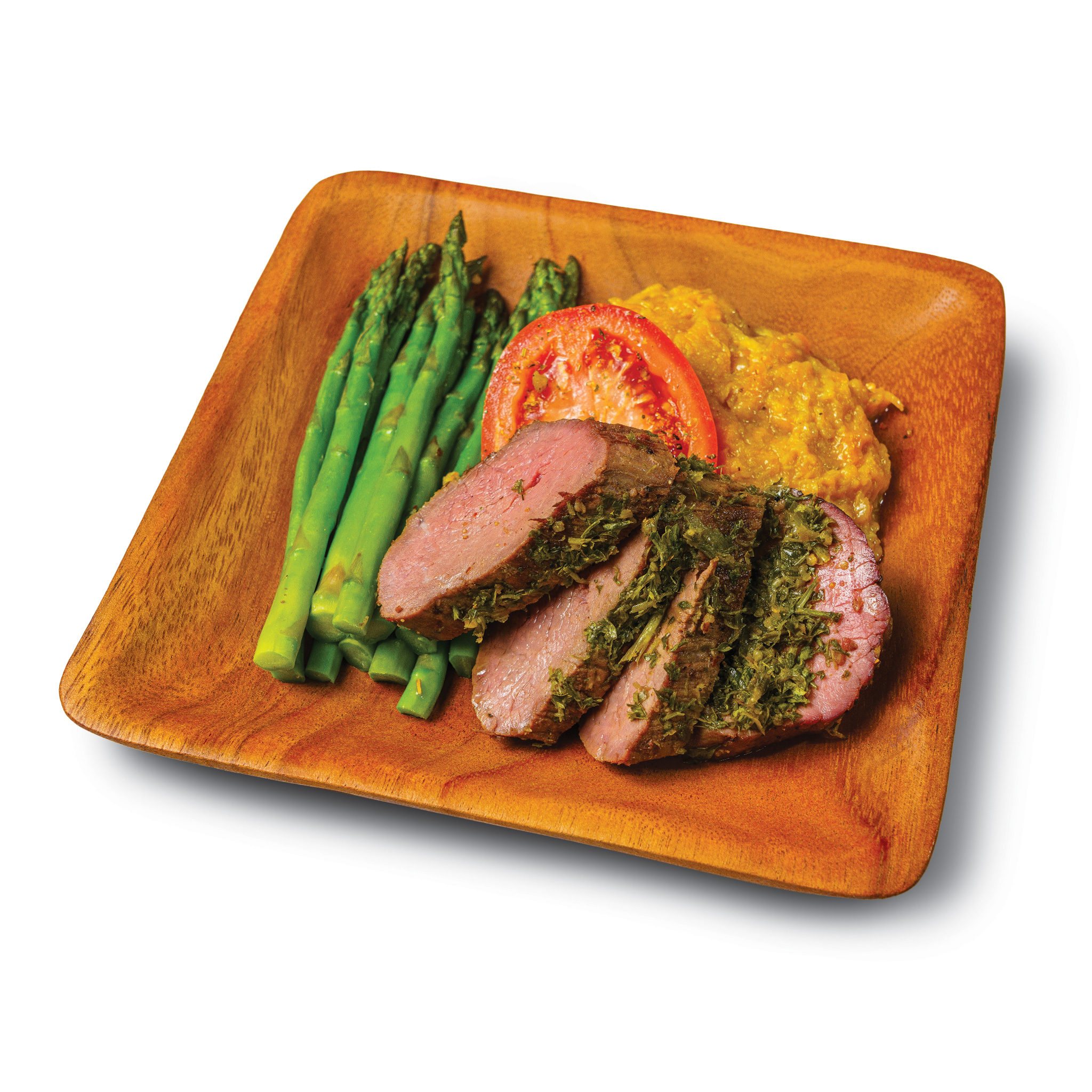 Sirloin Steak Plantains Asparagus Tomato Parsley Garlic Olive Oil Vinegar Cilantro GLUTEN FREE*